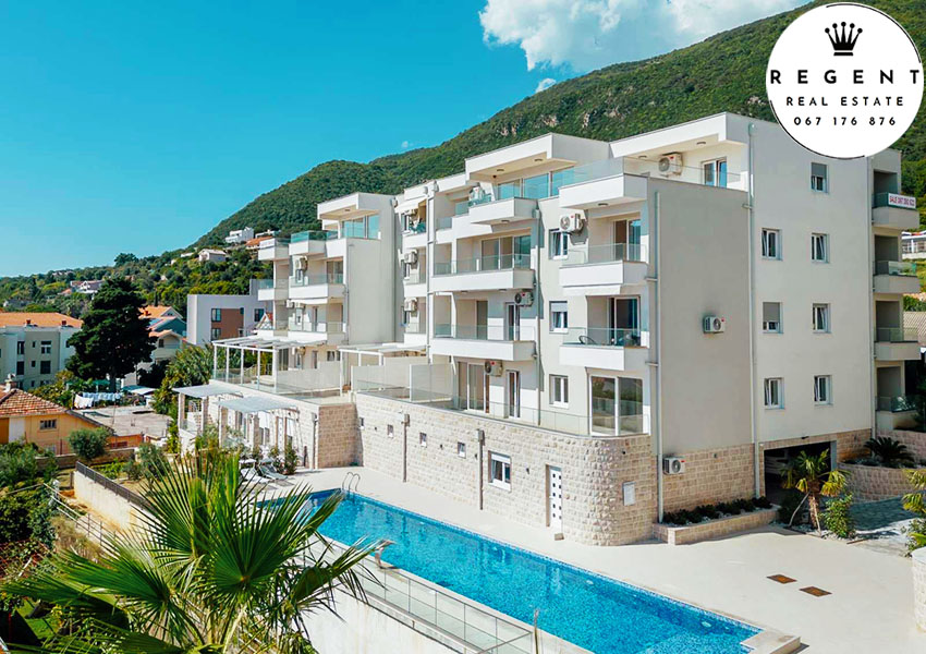 Трехкомнатная квартира в Баошичи, в частном комплексе с бассейном, всего в 80 метрах от моря.