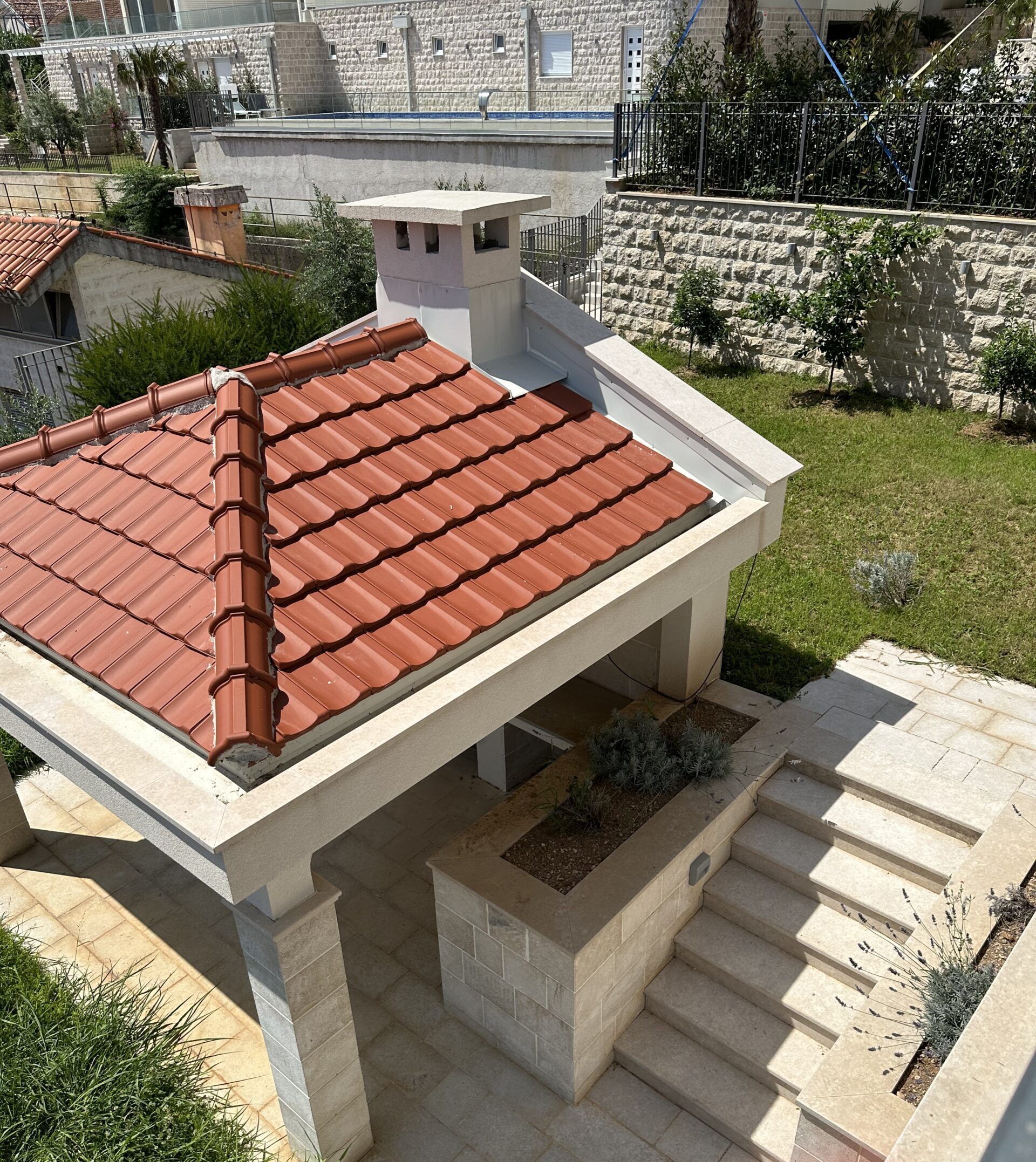 Sama zgrada apartmana se nalazi se u privatnom kompleksu koji se ponosi luksuznim bazenom, savršenim za opuštanje i rekreaciju. Okružen bogatim zelenilom, prostor oko bazena pruža mirnu oazu za sunčanje na samo 80 metara od mora. Stan je okrenut južno i sa terase ima divan pogled na Jadransko more. Za dodatnu praktičnost, stanarima je omogućeno da kupe posebno mesto u garaži ili parking.